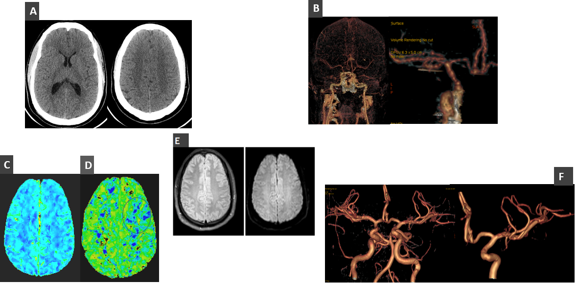 F. Angio-RM realizada 5 días después, que muestra un calibre normal de las arterias intracraneales